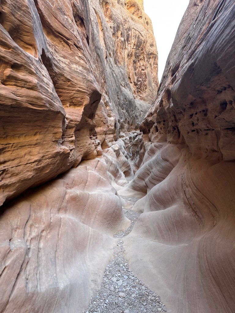 The next day, we explored the slot canyons of Bell Canyon and Little Wild Horse Canyon. These two canyons connect in an 8-mile loop. It was hot (90 plus degrees Fahrenheit), and we had to pack water and food to make the loop. Most people don’t do the entire loop as the slot canyons require some climbing. The canyons were exquisite.